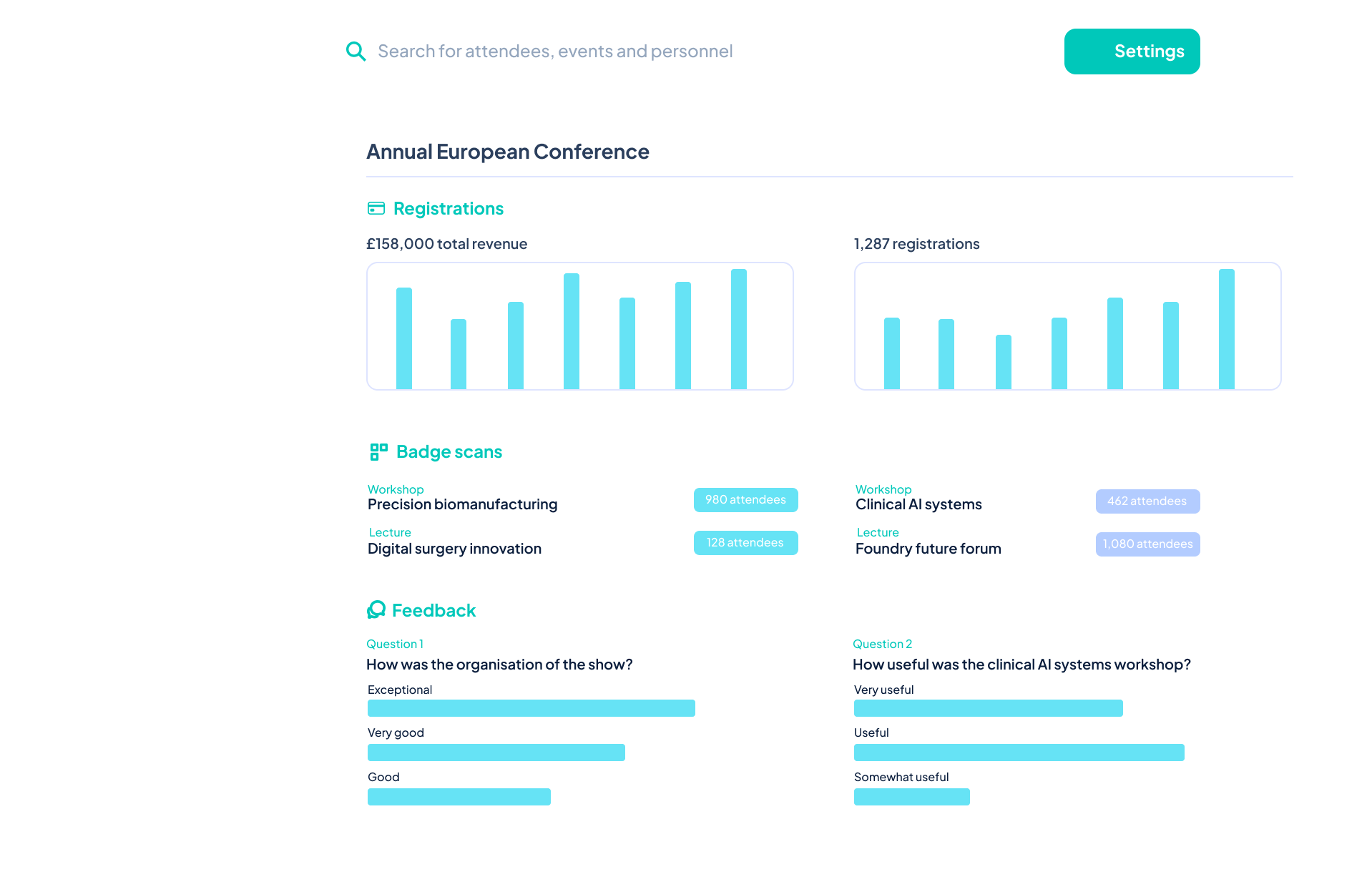 Your Eventscan platform becomes a long-term part of your organisation’s infrastructure. Fully branded, hosted on your domain and tailored to the way your organisation works.